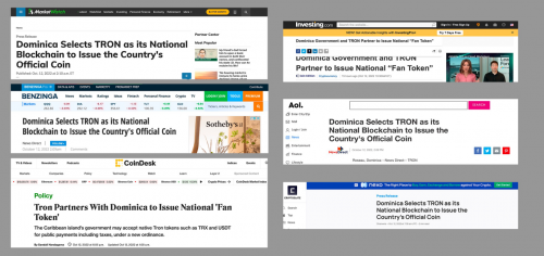 波场TRON此次与多米尼克一系列历史性的合作引发全球知名媒体高度关注。全球知名媒体集团道琼斯集团旗下Marketwatch、全球区块链与加密资产权威媒体Coindesk及知名财经媒体Benzinga等多家海外权威媒体对“波场TRON成为多米尼克‘国家公链’”这一事件进行了报道,认为波场 TRON 区块链基础设施的开放性及低成本特点,将在促进小岛屿发展中国家(SIDS)融入全球经济的过程中发挥关键作用。多家媒体指出,这一合作将为多米尼克提供引领数字创新的能力,推动该国进一步实现经济增长,同时为中小经济体发展数字经济提供借鉴典范,有望开启主权国家推动区块链行业发展的新模式。