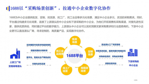 本次特别增加了中小企业数字化采购专篇,以阿里巴巴1688为调研案例,深入分析了平台支撑中小微企业数字化采购场景创新的动力机制和实践经验。