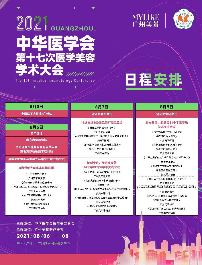 2021年医美界人人都关注的头等大事—— 中华医学会第十七次全国医学美容学术大会,8月6日—8日将在广州越秀国际会议中心举行。本次大会由中华医学会、中华医学会医学美容分会主办,广州美莱医疗美容承办。大会期间,超过5000位来自全国医美业界的菁英、大咖齐聚,共话行业新技术、新产品、新风向。
